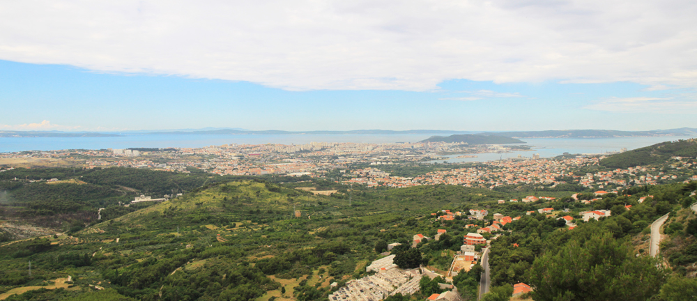 И на город Сплит. По прямой километров десять.