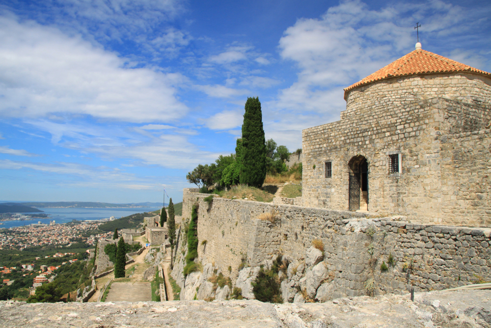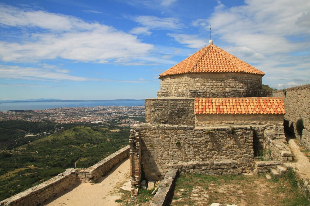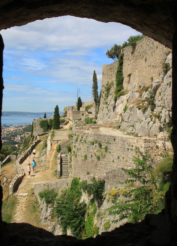 Над долиной, ведущей к Сплиту, возвышается скала. А на ней построена крепость Клис, которой в общей сложности больше двух тысяч лет. Уж очень хорошим было естественное укрепление, еще в 3 веке до нашей эры тут начали что-то строить. Стены много раз разрушали, крепость переходила то к венецианцам, то к туркам, то к хорватам. В нынешней версии у крепости три линии обороны.