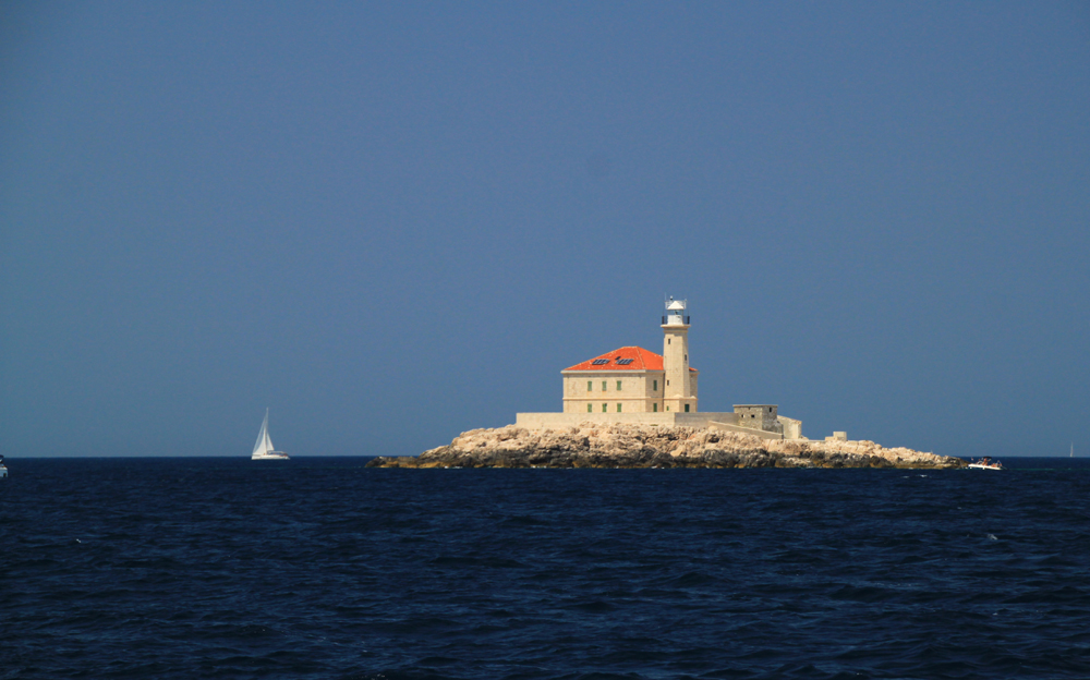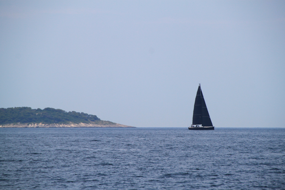 Последний час в проливе мы свернули паруса и шли под мотором. Так везде получалось в хорватских проливах: во-первых, чаще всего там ветровая тень, во вторых, в узком проливе ходить галсами сложнее, вокруг другие яхты.