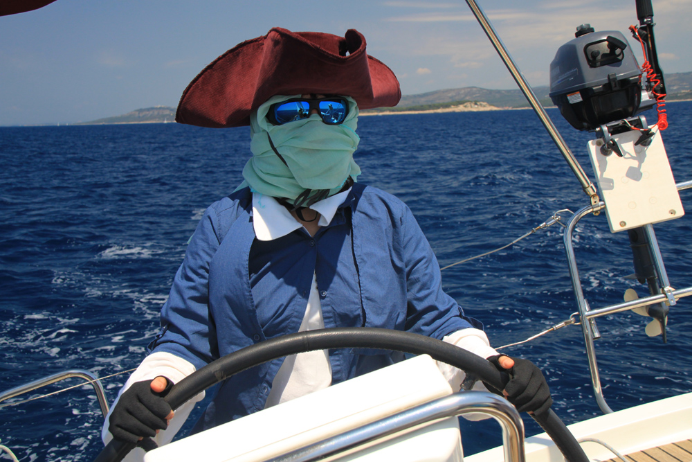 А вид у нее такой диковинный, потому что то ли на солнце, то ли на крем от солнца пошла аллергия. Купить в Хорватии нужные лекарства невозможно, все по рецептам, так что была она некоторое время похожа на маскирующегося Дэйви Джонса :-)