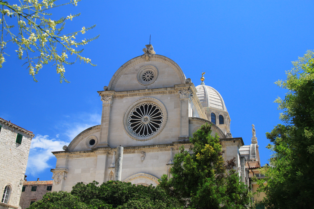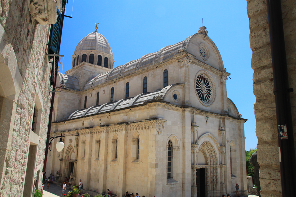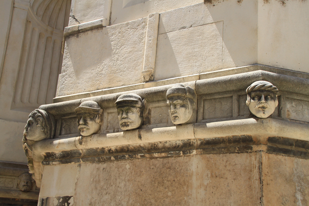Внутрь не пошли, вход платный (20 кун). Снаружи собор украшен головами горожан... в смысле, изображенными головами, однако если смотреть на выражения лиц, то становится немного не по себе.