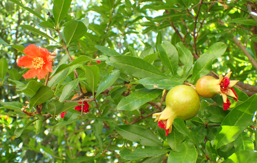 Цветы и маленькие плоды граната: