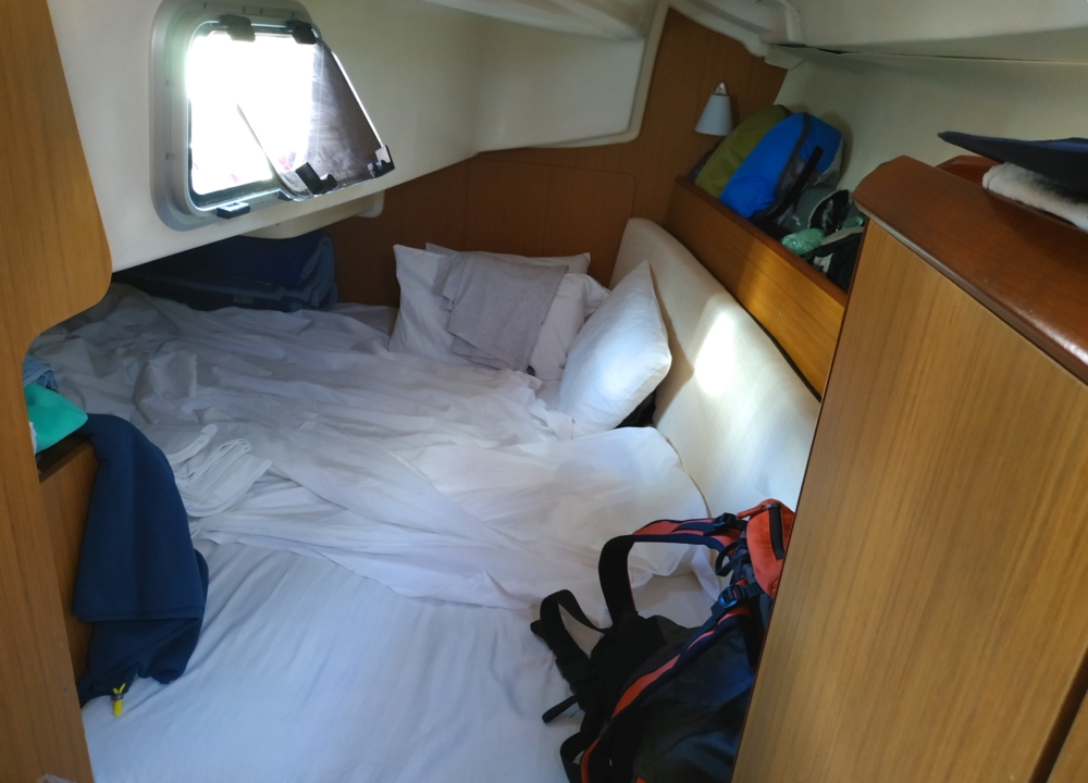 Наша лодка была готова после уборки уже в 15:30, на полтора часа раньше заявленного срока. Но проверка заняла очень много времени. Плохо работала плита, не включалась панель приборов в кокпите (на них был отдельный рычаг в каюте сзади, это нам на следующее утро рассказали), один из кранцев был дырявый (его заменили). Датчиков воды и топлива не было вообще, так что впереди ждали неизведанные сюрпризы. Еще в кокпит не была выведена рация, и gps тоже был только внизу в кают-компании, что делало его совершенно бесполезным. Часов до восьми вечера мы с Раном колбасились с проверкой. Наши матросы в это время таскали еду и воду из двух соседних супермаркетов. Распихивать содержимое рюкзаков оказалось трудновато, в этой модели две каюты и совсем мало места под личные вещи. Но мы старались.