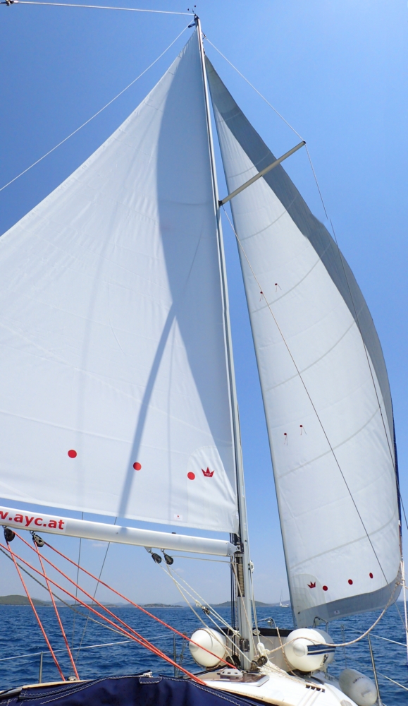 На следующий день, выйдя из бухты Солинска, мы почти сразу же зарифились и одним галсом дошли до острова Вис. Ветер был 15 узлов и знатно болтало. Прошли 24 мили за 4,5 часа, и это с первыми рифами.