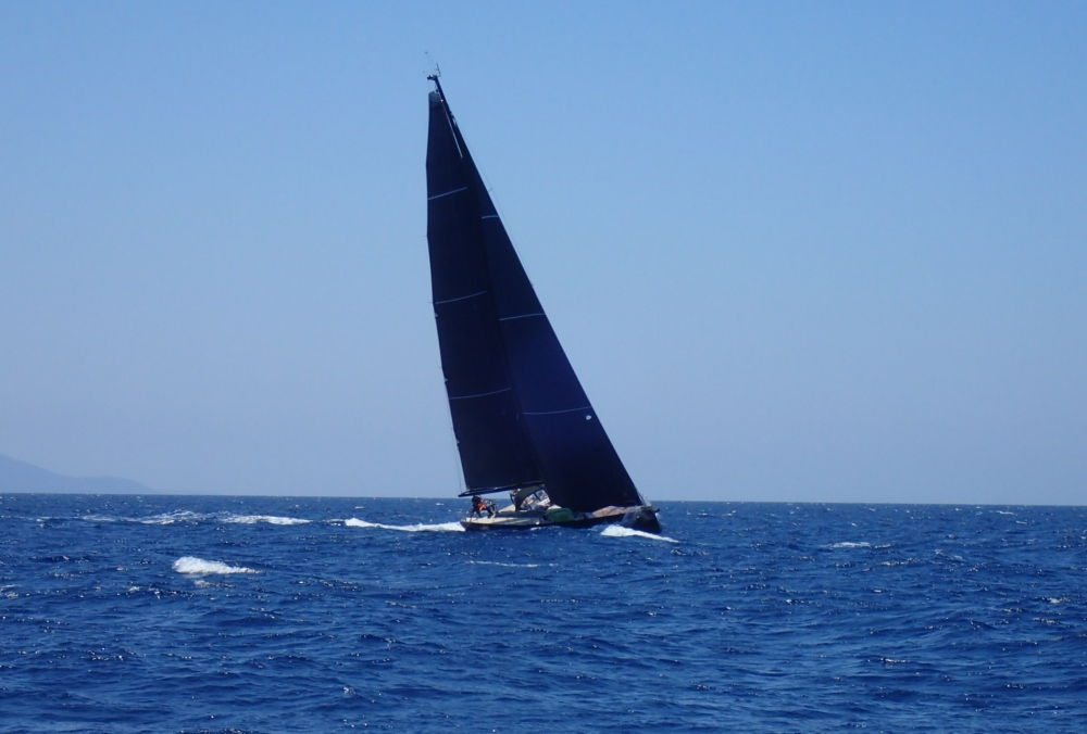 Сперва мы шли под парусом, потом ветер стих, а потом неожиданно раздуло так, что скорость доходила до 8 узлов, а средняя была чуть больше пяти.