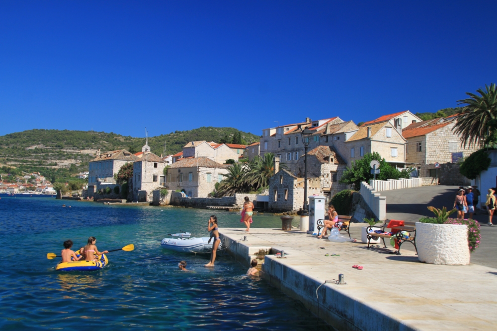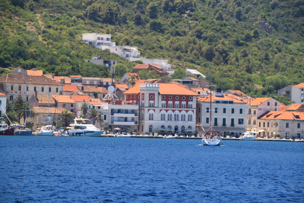 Марина в Висе — это просто причал на набережной, мест там немного. Стоянка для нас стоила 310 кун, есть душ и туалет, но условия довольно простые.