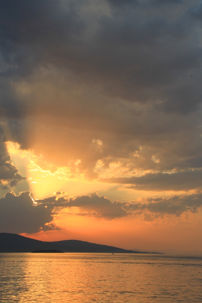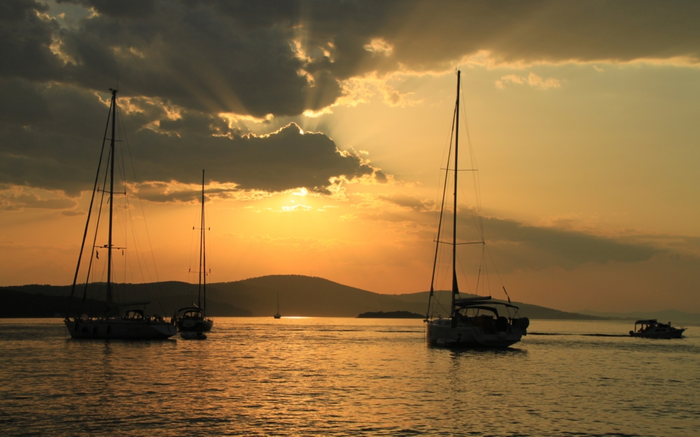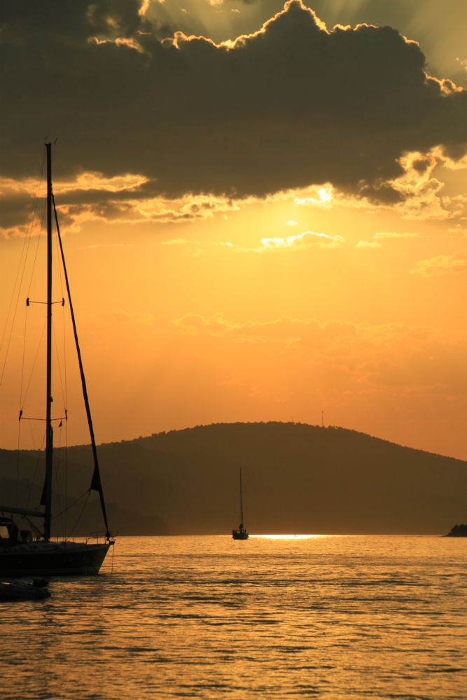 Перед входом в марину справа есть небольшая бухточка, где мы заметили стоящие на якорях яхты. Вечером пришли купаться туда, а заодно посмотрели красивый закат.