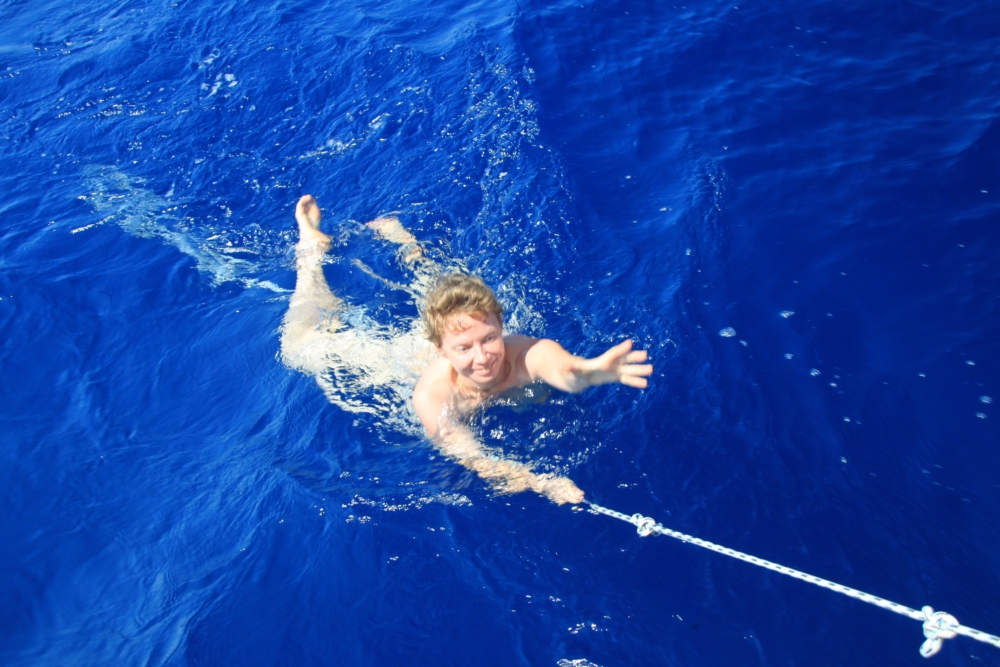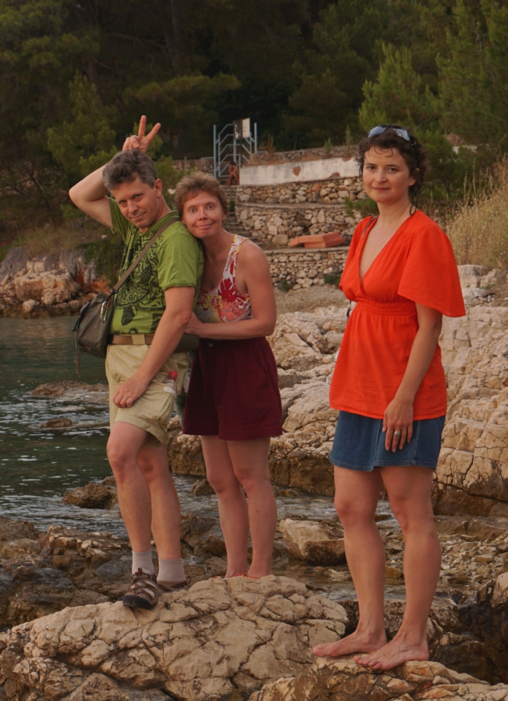 На обед встали в бухту Вели Дубока рядом с яхтой немецких нудистов. Казалось бы, кого этим можно удивить в Хорватии? Но тем не менее мы наблюдали довольно смешную пантомиму. Когда мы заходили в эту бухту, нудисты нам приветливо помахали. А мы с энтузиазмом помахали им в ответ и бросили рядом якорь. Радуясь, что можно купаться голышом и никто не будет от этого морально страдать. Пока мы варили суп, в бухту пытались приехать еще пять лодок. Каждая из них видела немецких нудистов, приветливо машущих им руками, всего лишь руками, и в ужасе разворачивалась назад. Ну и славно, в бухте было мало места.