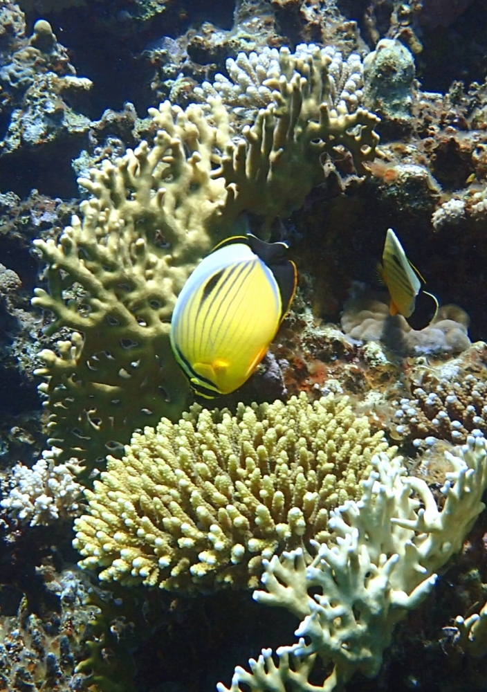 Вот тут красивая смелая австрийская рыба-бабочка слева и попа такой же напуганной бабочки справа.