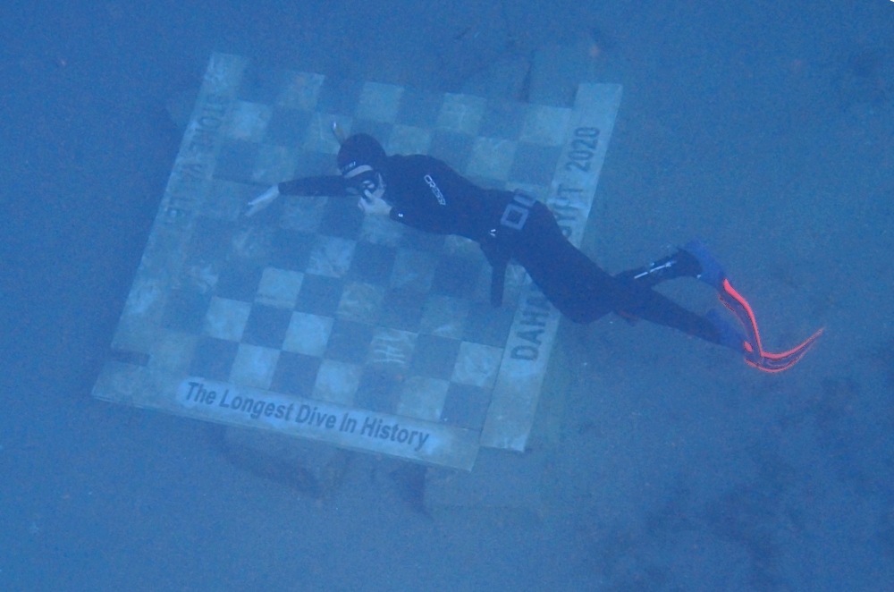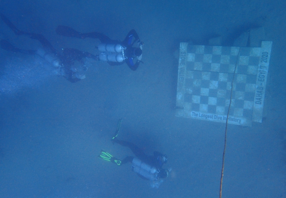 Фридайвер и шахматная доска на глубине 10 метров. Нырнул — и можно поиграть :-)