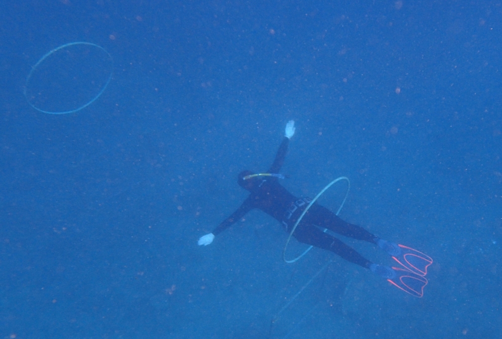 Вот, например, парк плавучести возле Лайтхауса. Там всего 4 таких обруча, глубина 10 метров. Пронырнуть все четыре получается не всегда.