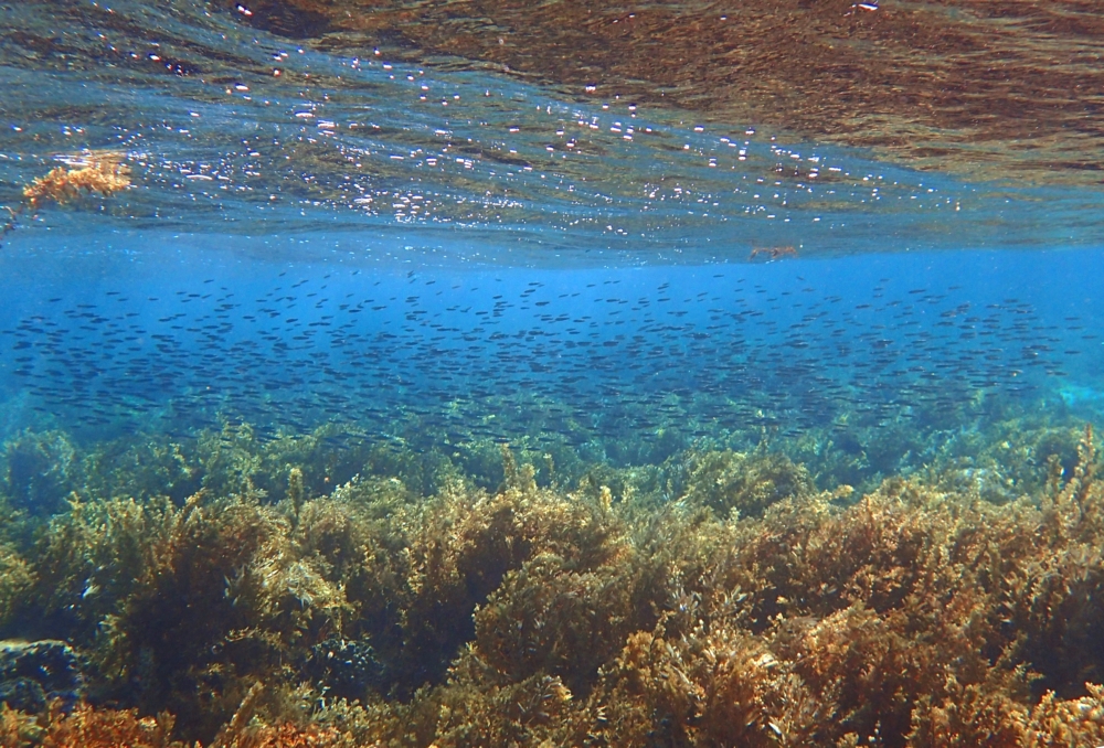 Иногда перед коралловым рифом растет трава. Это риф Асала, я видела там черепаху, которая паслась, но снять не успела.