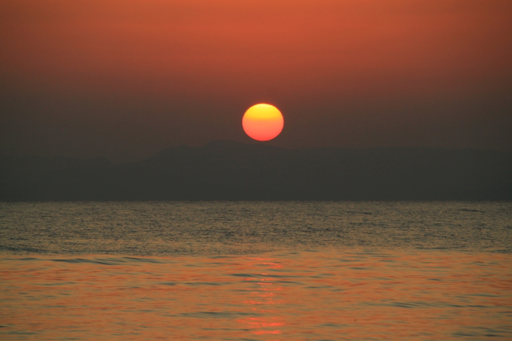Солнце встает на другой стороне залива, где Саудовская Аравия.
