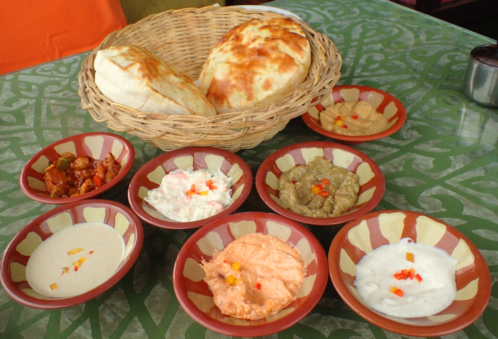 Это закуски, которые приносят просто потому, что ты соизволил почтить заведение. Типичный ближневосточный набор.