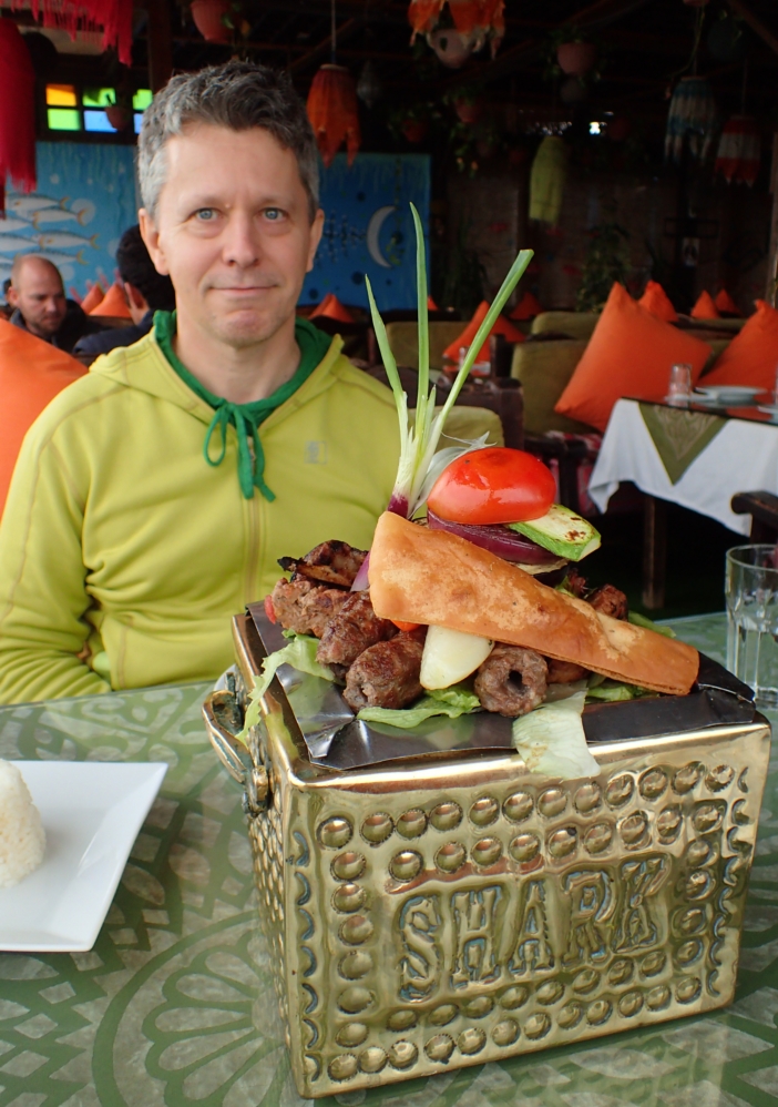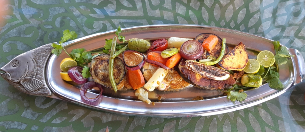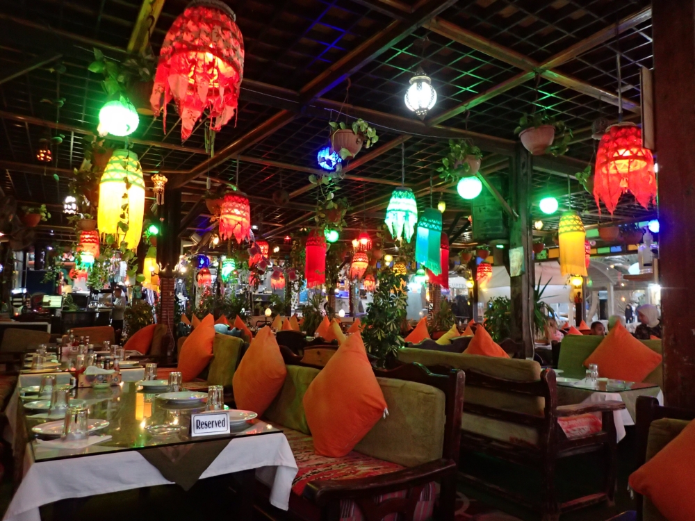 Цены тут выше турецких, но ниже московских. Хороший обед с мясом или рыбой примерно 10$, скромный — 7$, супер-роскошный — 15$. Это считается ресторанными ценами выше среднего, потому что на второй линии в простом заведении можно пообедать на 4-5$. Но мы сочли, что раз в день пусть будет красиво и вкусно.