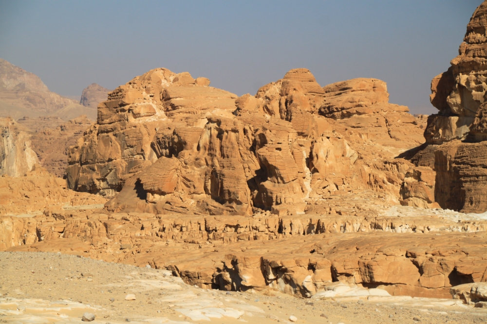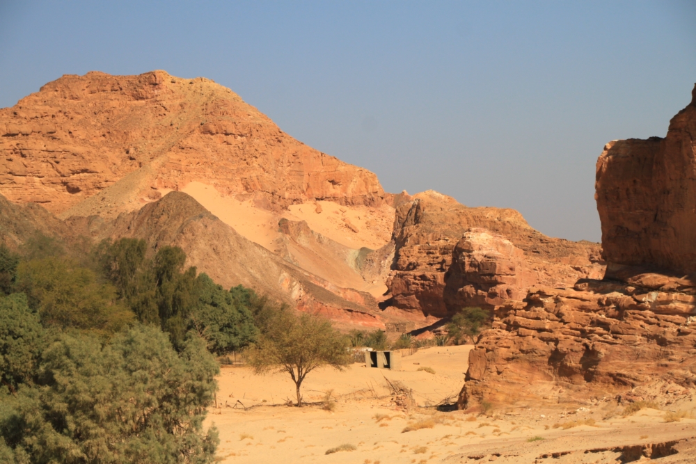 Белый и Цветной каньоны — это единственная экскурсия, на которую мы съездили из Дахаба. Самостоятельно по Синайскому полуострову ездить невозможно, он весь — одна большая военная зона с чек-постами. Поэтому мы решили поехать организованно, и выбрали для этого 1 января :-)