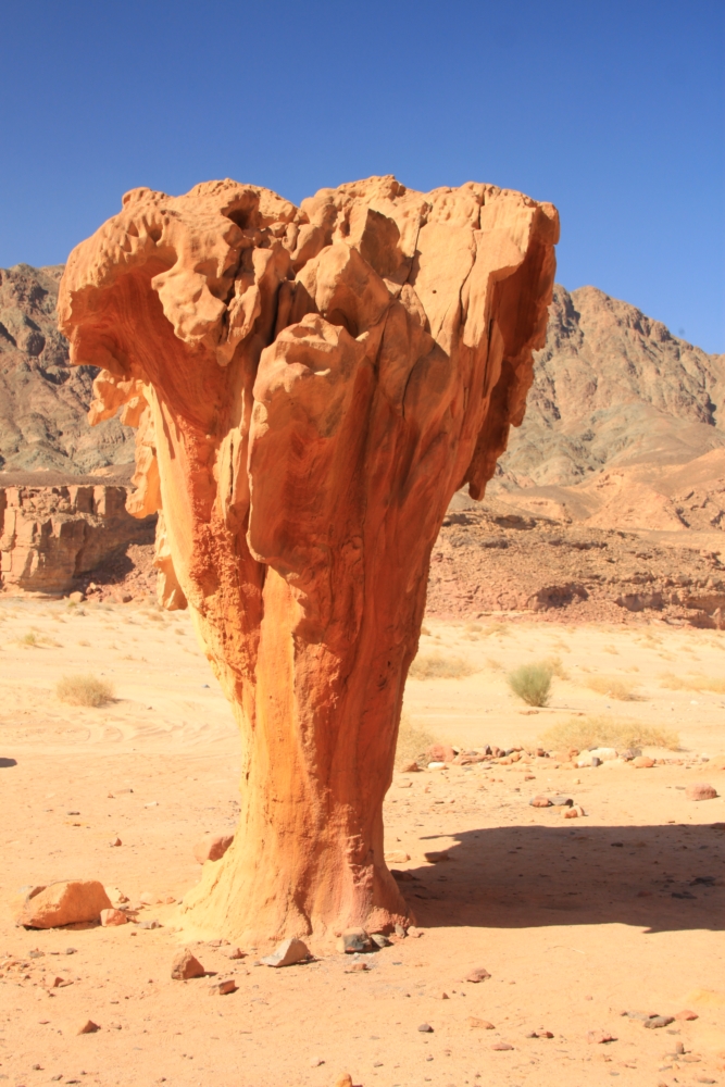 Одиноко стоящая скала, очень похожая на окружающие скалы.