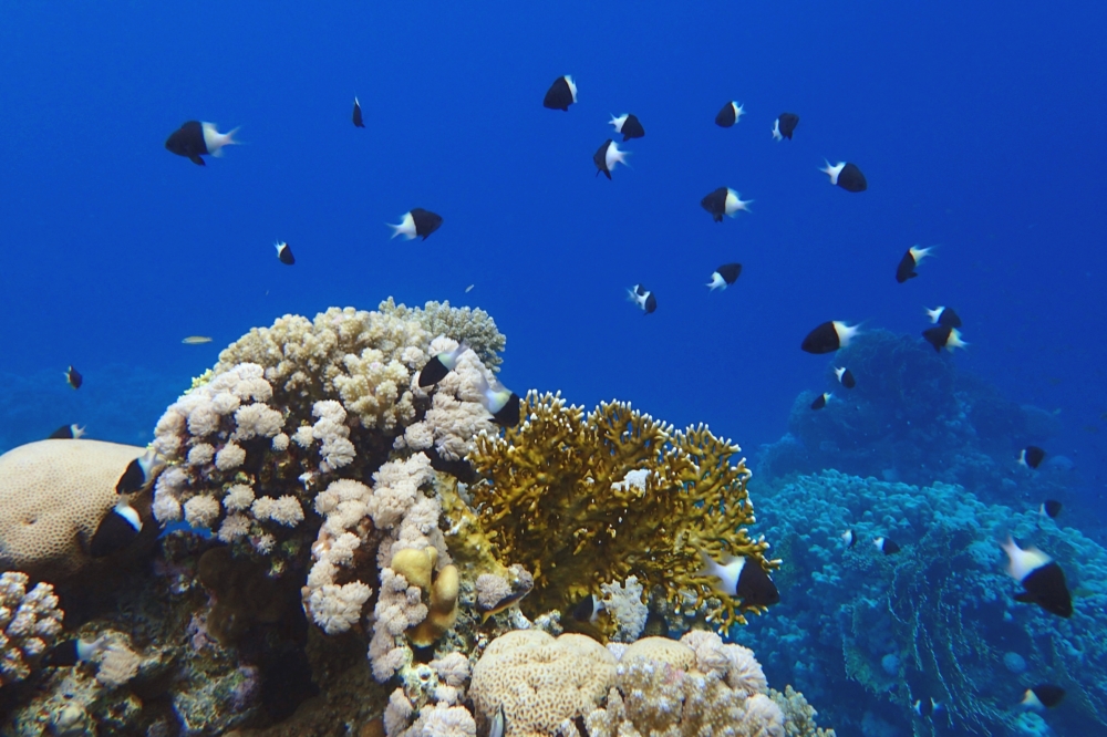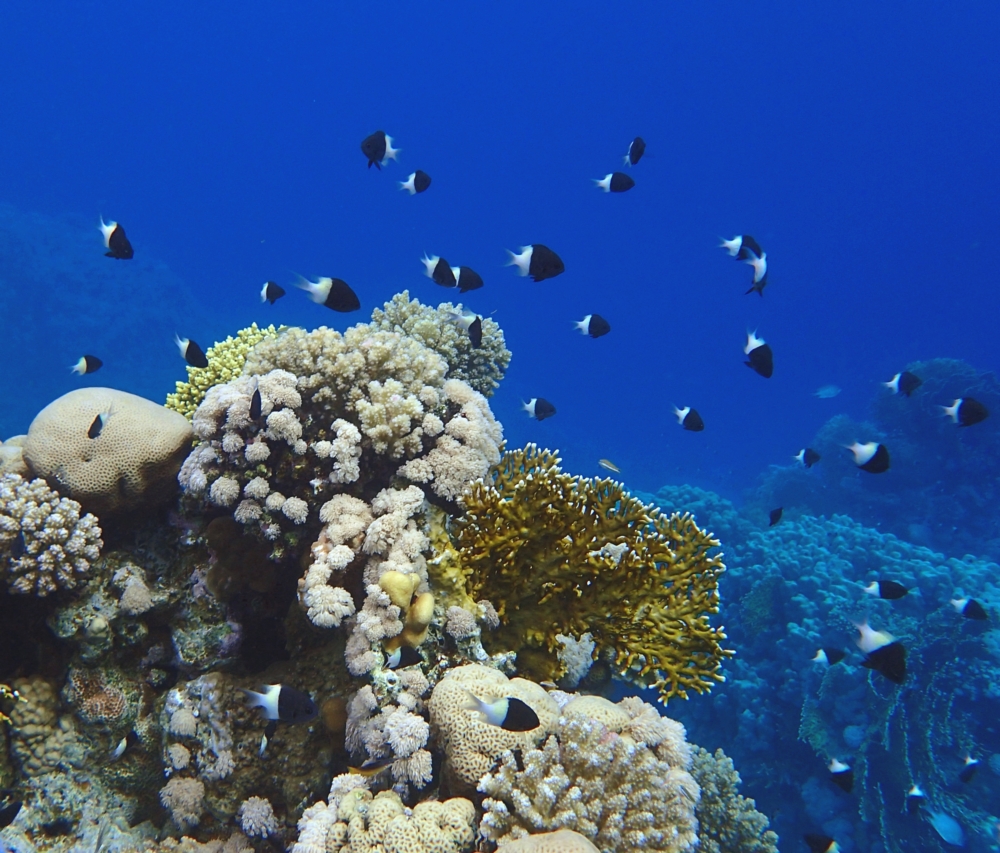 Снимать их сложно из-за контрастной окраски. Только один раз в заповеднике Рас-Мохаммед нам удалось подплыть поближе к стайке.