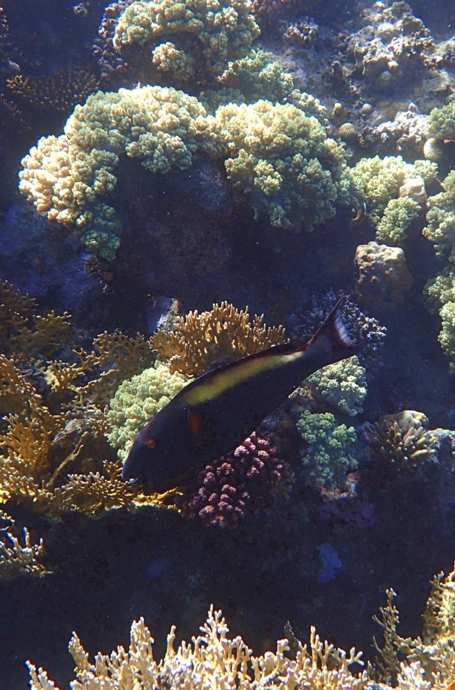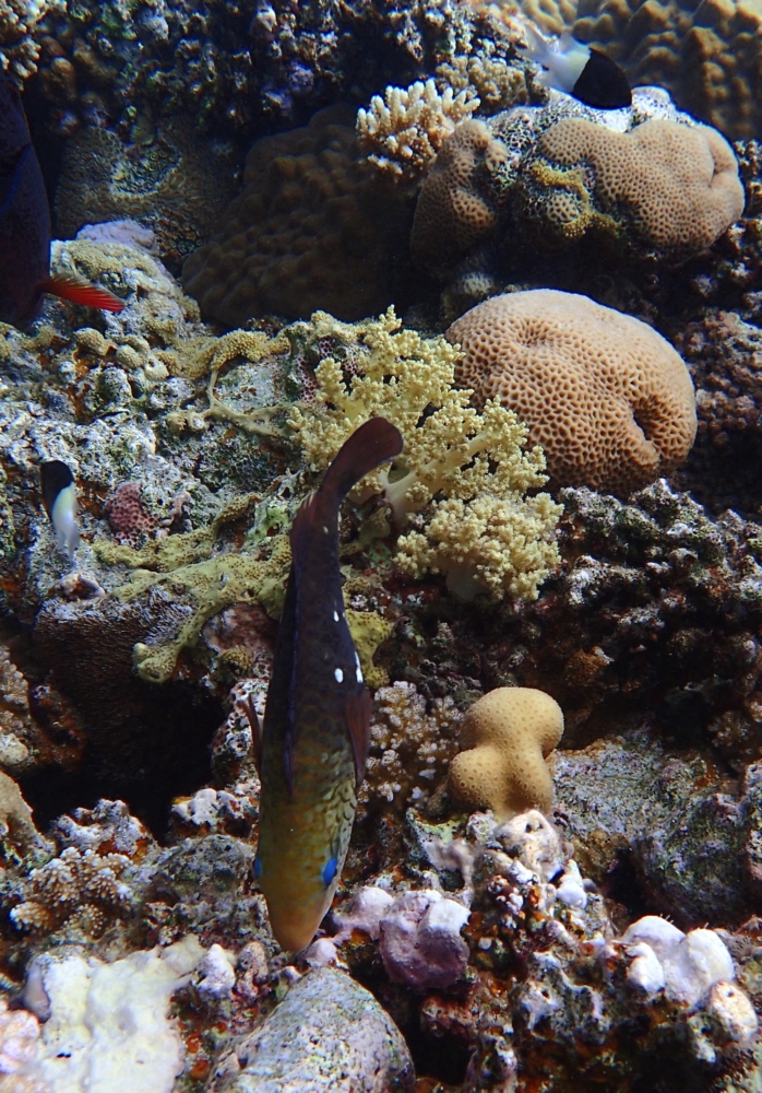 А это явно попугай. Может, даже двухцветный попугай Cetoscarus bicolor, но это не точно.