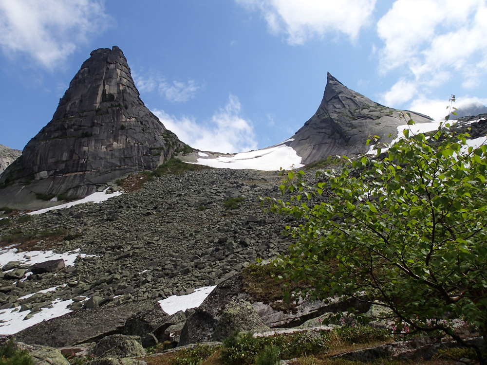 Выбрав стоянку, мы пообедали, а после группа разделилась: Владимир и Лена пошли на Стрелку, у них в запасе было три дня. Надо сказать, что по горам они двигаются намного быстрее нас, и мы бы их дальше сильно тормозили. А трое их знакомых героически полезли на перевал Птица, чтобы на следующий день спуститься с гор: у них был в запасе только один день.