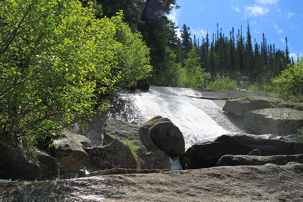 Многие водопады напоминают горки в аквапарке: по наклонной плите течет поток воды.