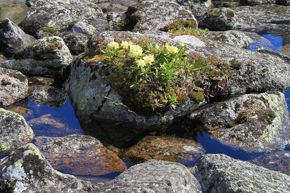 "Клумба" с золотистыми рододендронами.