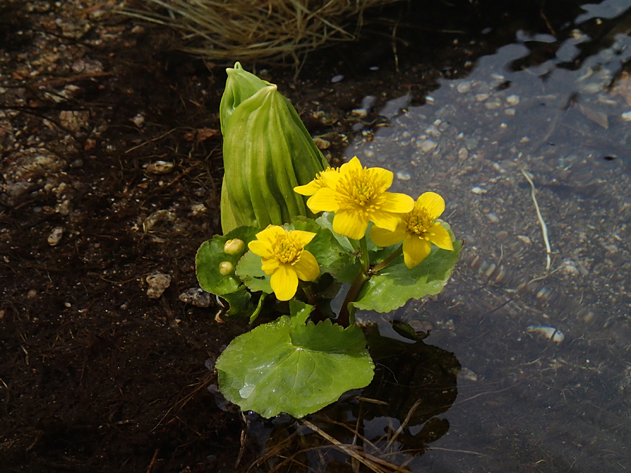 Внизу на берегу ручья попадаются маленькие клумбы.