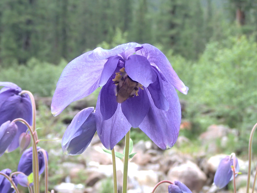В аквилегии угнездился шмель и приготовился переждать циклон.