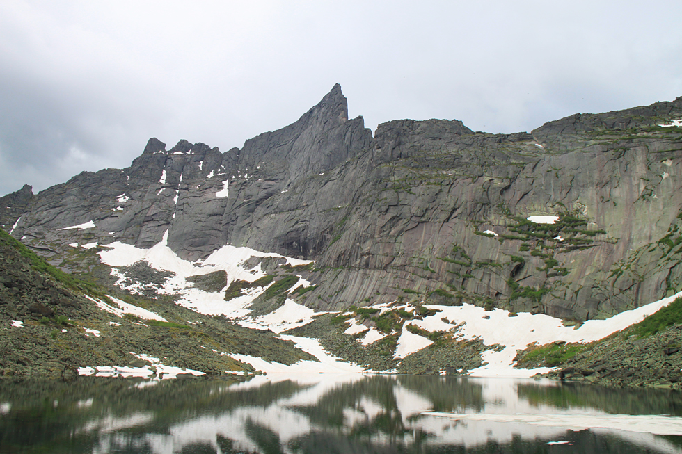 Вроде бы от озера можно к нему подняться, но подъем крутой и надо знать, куда поворачивать, чтобы не упереться в сбросы. В этот раз у нас был озерный трек, а с пиками как-то не сложилось.