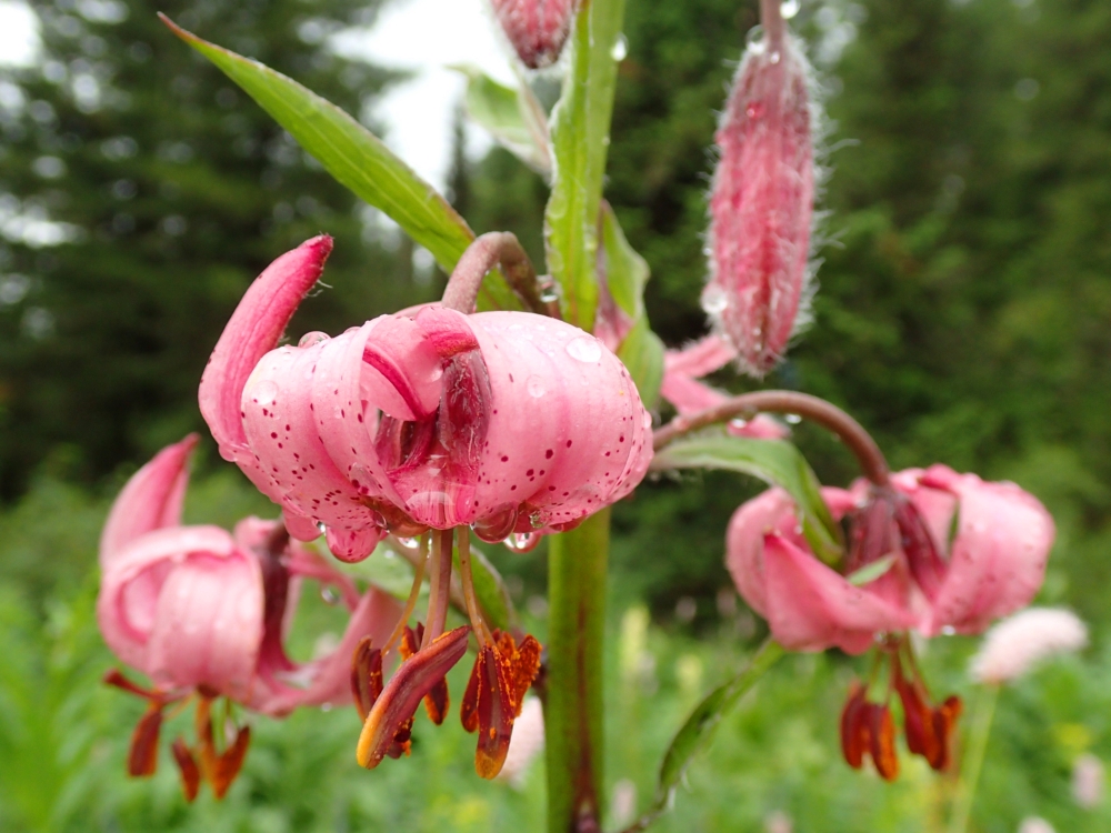 В этот раз жарки и рододендроны отцвели, зато нам достались поляны аквилегий и вот такие дикие лилии: