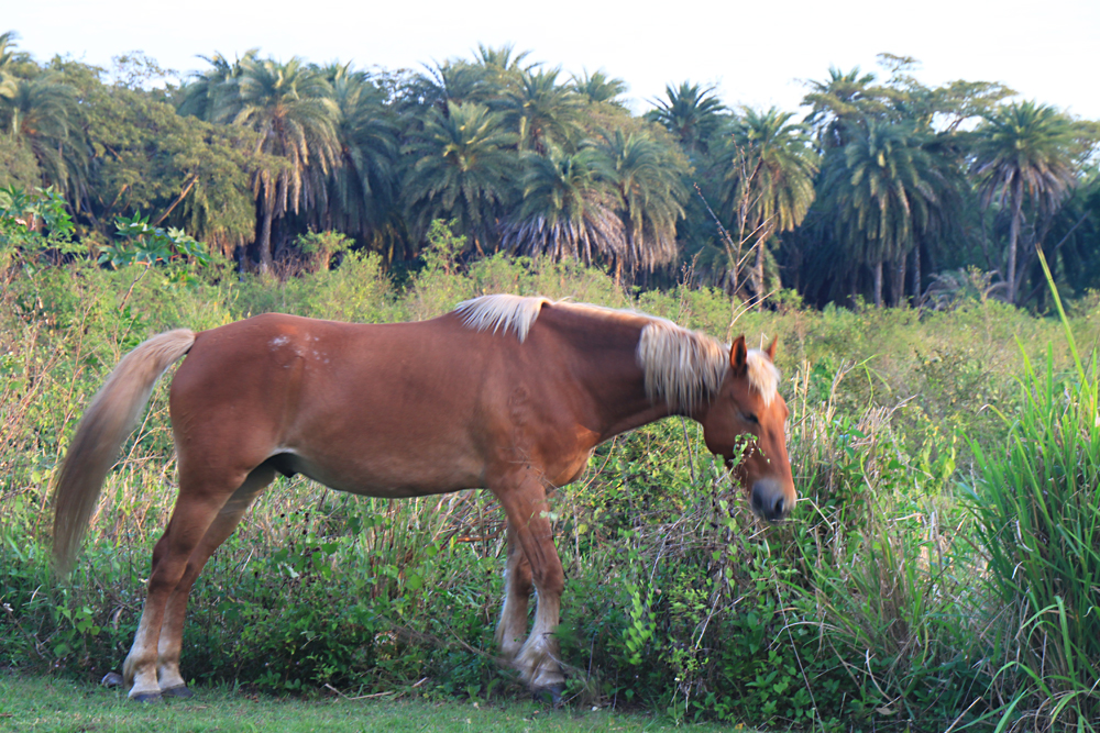 Вместо коров на соседнем участке паслись лошадки на фоне пальм. И никаких гор мусора.