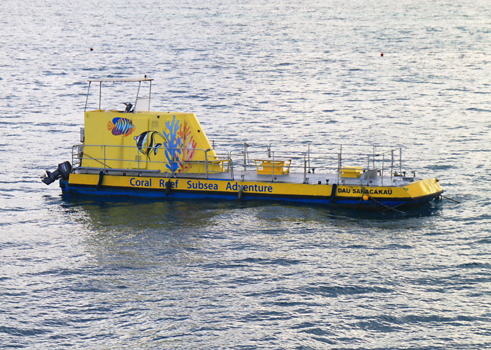 Желтая субмарина для рассматривания подводных красот. Дно у нее прозрачное.