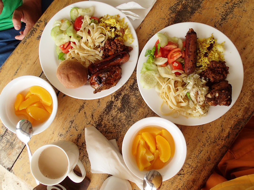 На завтрак и на обед был шведский стол, на ужин можно выбрать одно из нескольких блюд. Еда обильная, но довольно простая, без изысков. Фрукты дают только на завтрак. Воду и чай дают бесплатно, остальные напитки — за отдельные деньги.