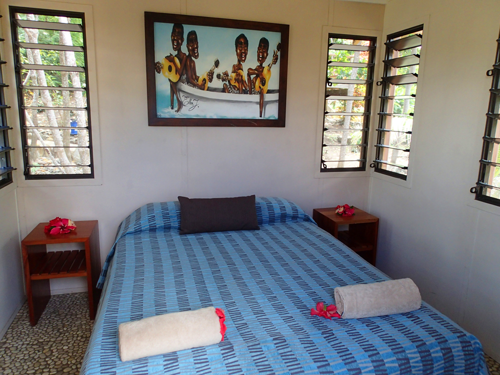 Мы жили на острове три дня, и потому взяли жилье подешевле, без собственной ванной. Даже такой домик тут уже стоит 157 FJD в день, а бунгало на берегу с удобствами примерно в два раза дороже, а «вилла» на берегу — так и вообще стоит около 500. Это для нас уже не очень подъемно.