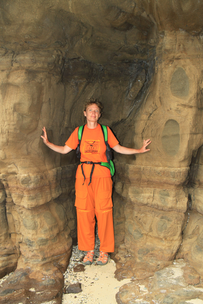 Вдоль берега в песчанике под воздействием волн получаются вот такие норки.