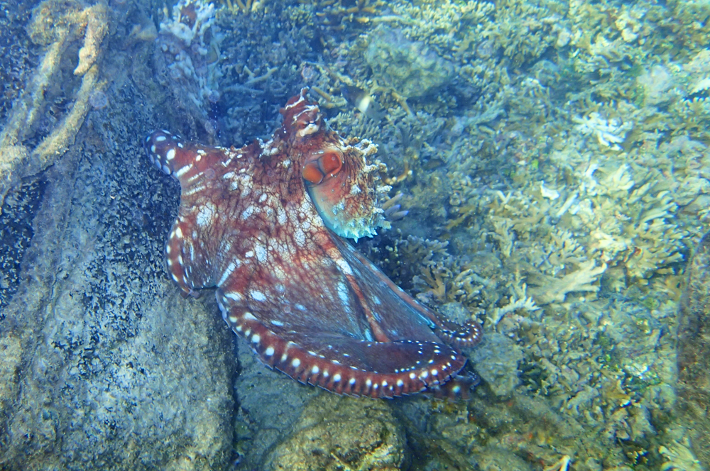 Однажды мы встретили осьминога и долго его рассматривали.