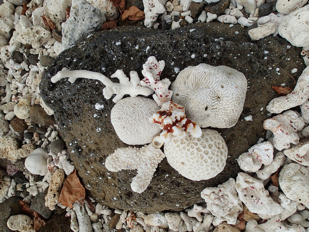 Там, где нет песчаных пляжей, на берегу лежат мертвые кораллы.