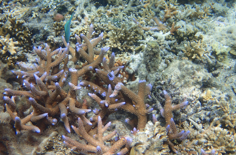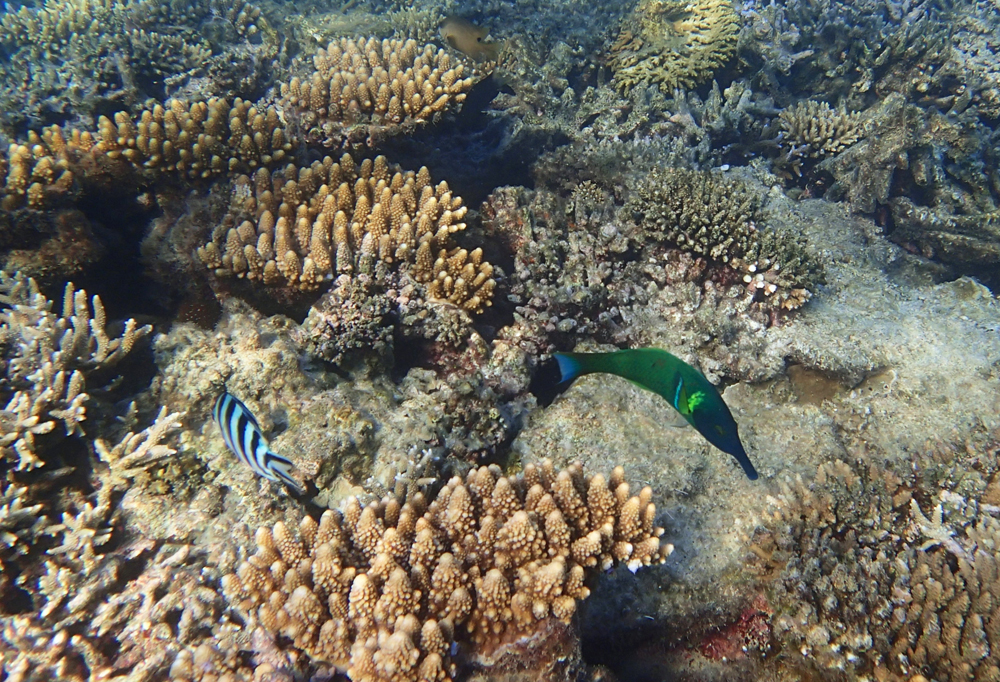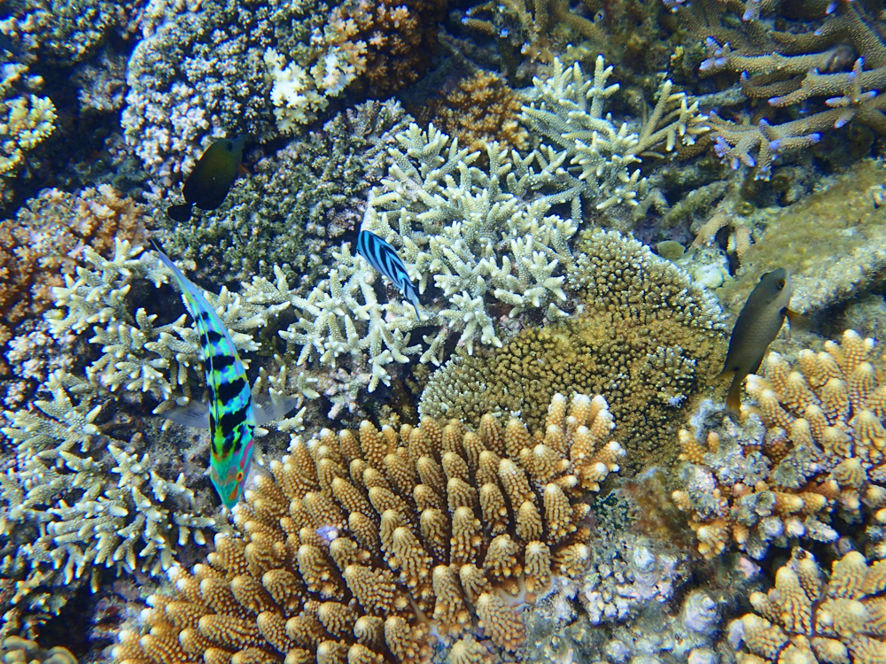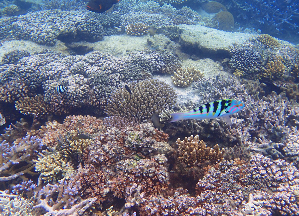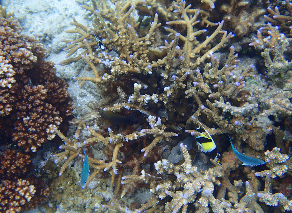 Меня все спрашивают — а где же «те самые» красные кораллы, из которых делают бусы? Не знаю, на Фиджи их нет, зато есть розовые, голубые и вот такие, с сиреневыми кончиками и очень острые.