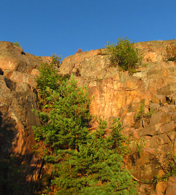 На розовых глыбах чудесным образом ухитряются расти деревья: