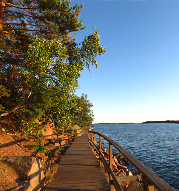А вот несколько кадров, сделанных в западной гавани Мариехамна. Там не лес, а скорее парк и деревянная дорожка вдоль берега. Мы попали в самое живописное время, на закате.