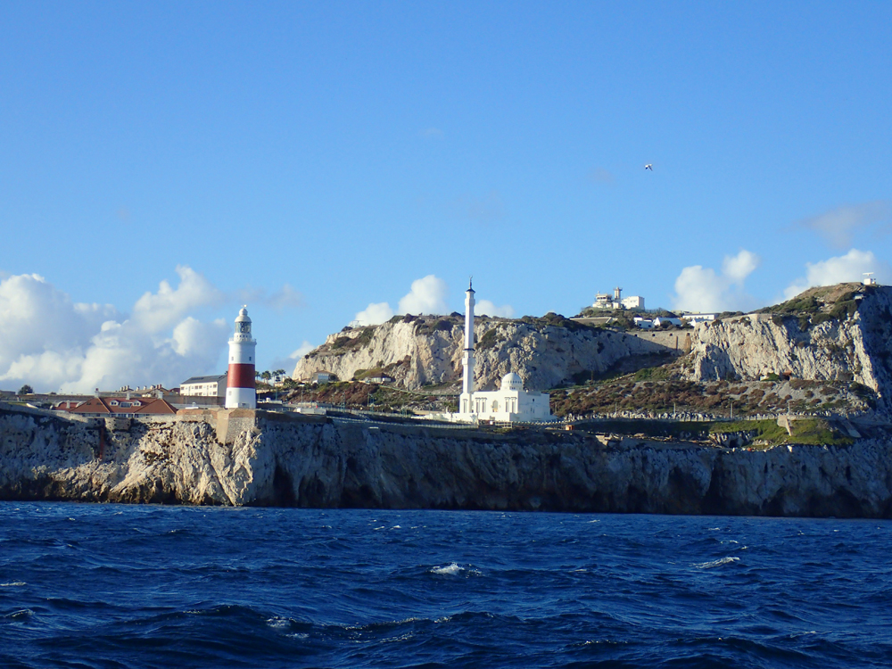 На мысу Гибралтара стоит маяк и мечеть. И вы не спрашивайте, что она делает на британской территории в таком месте. Стоит.