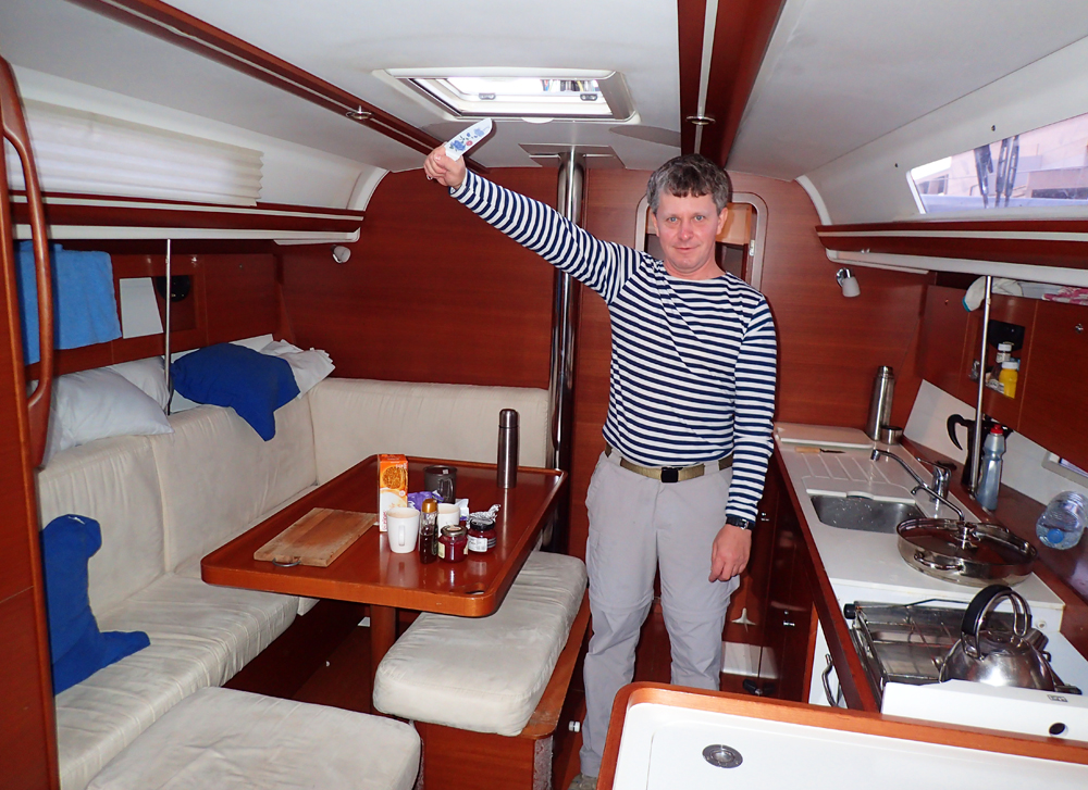 Наша яхта называлась «Бевелле», Dufour 375 (это выпускающая компания и длина не знаю в чем, так она была 11 метров). В ней три каюты и один гальюн, небольшая такая яхта.