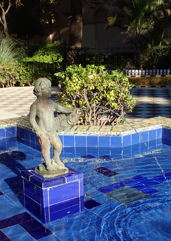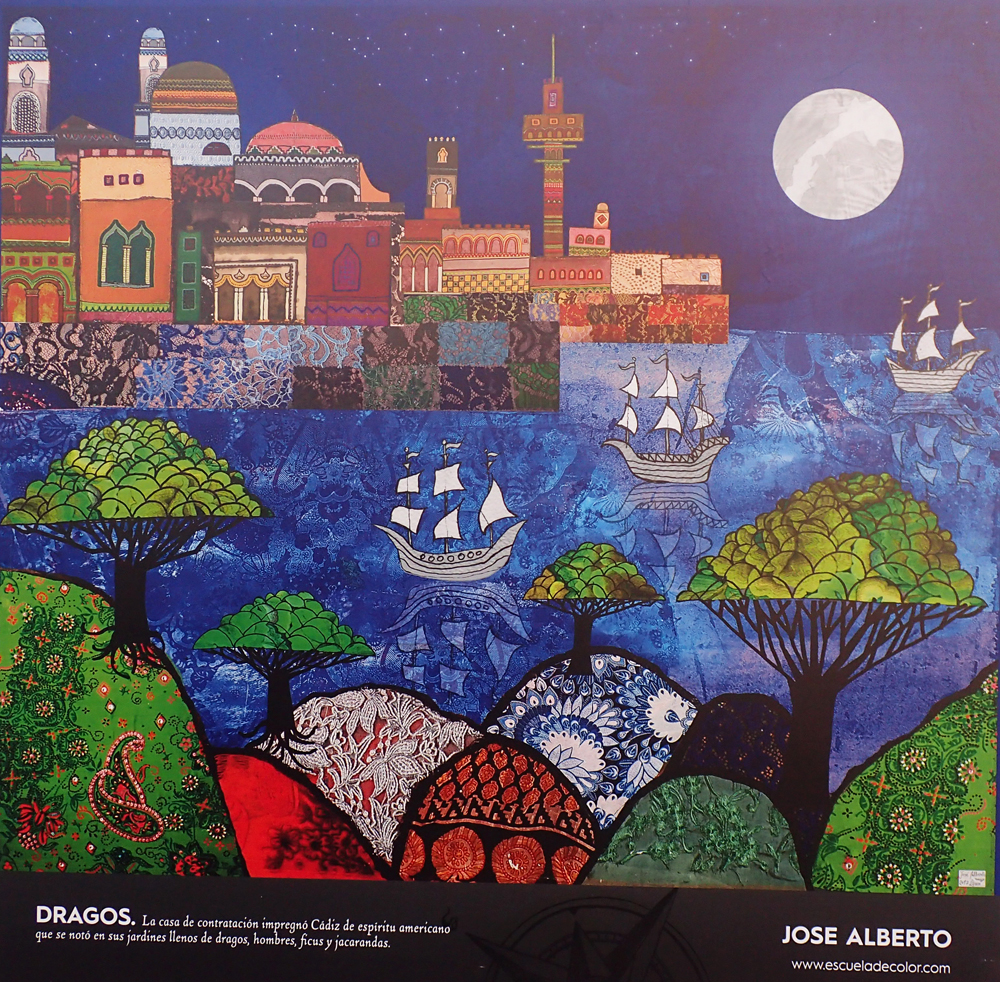 Там есть старый рынок, скорее похожий на античный: каменные портики и прилавки с овощами, фруктами и свежей рыбой. Снаружи рынок украшен картинами. Картина со сказочным Кадисом тоже оттуда. А еще тут есть тема колониальных товаров.