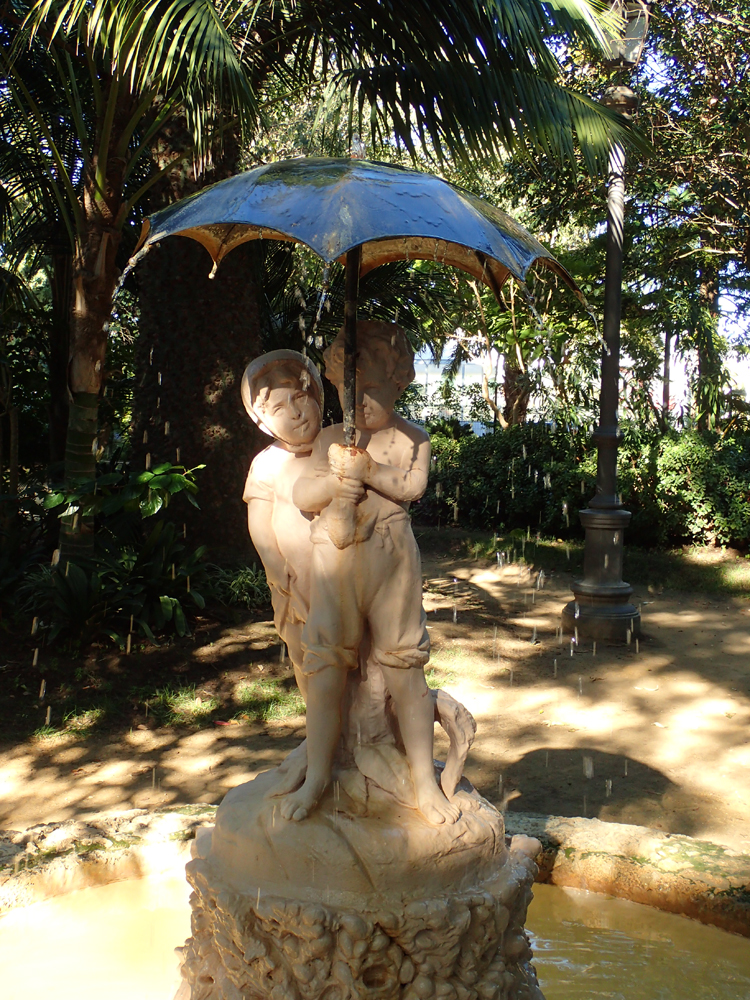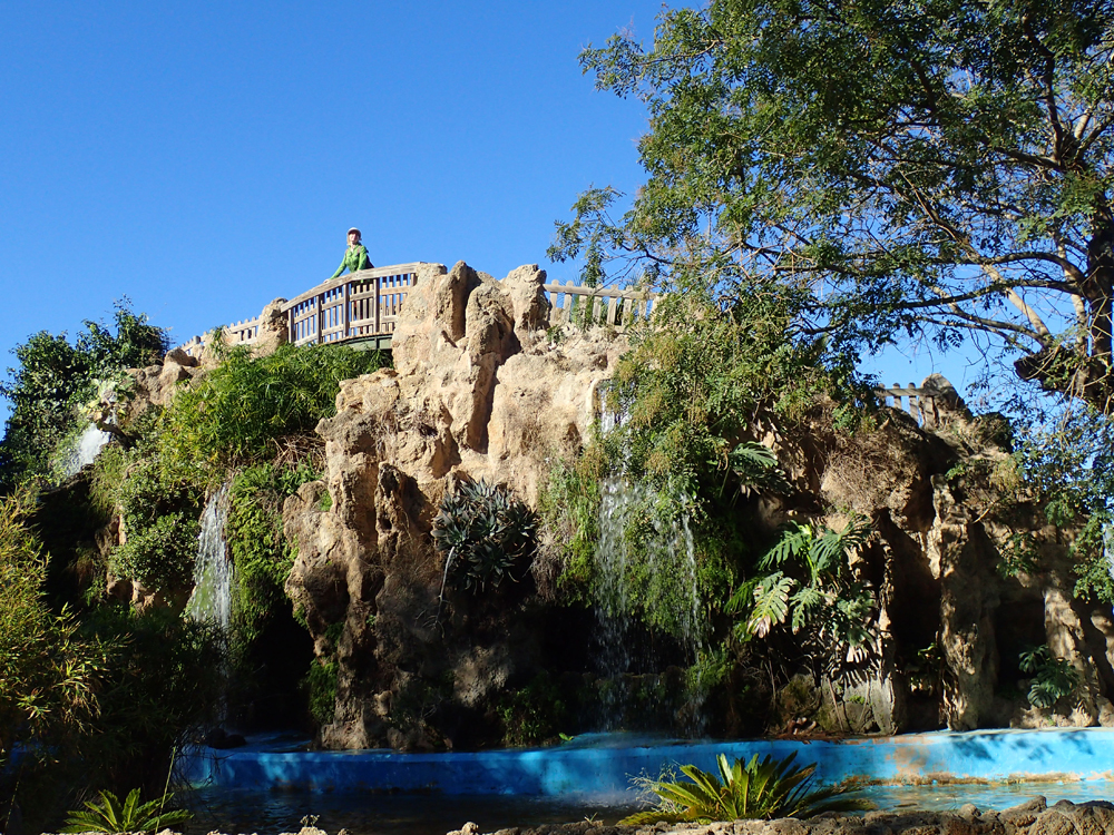Парк рассчитан на жаркую погоду. Много фонтанчиков и деревьев с густой тенью.