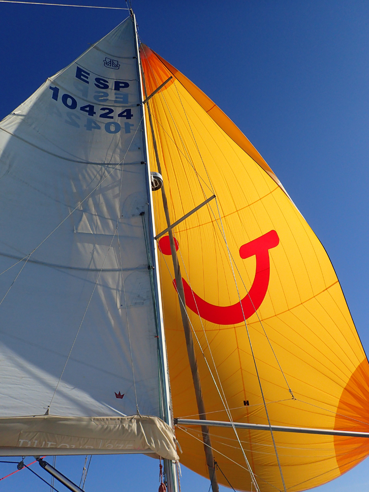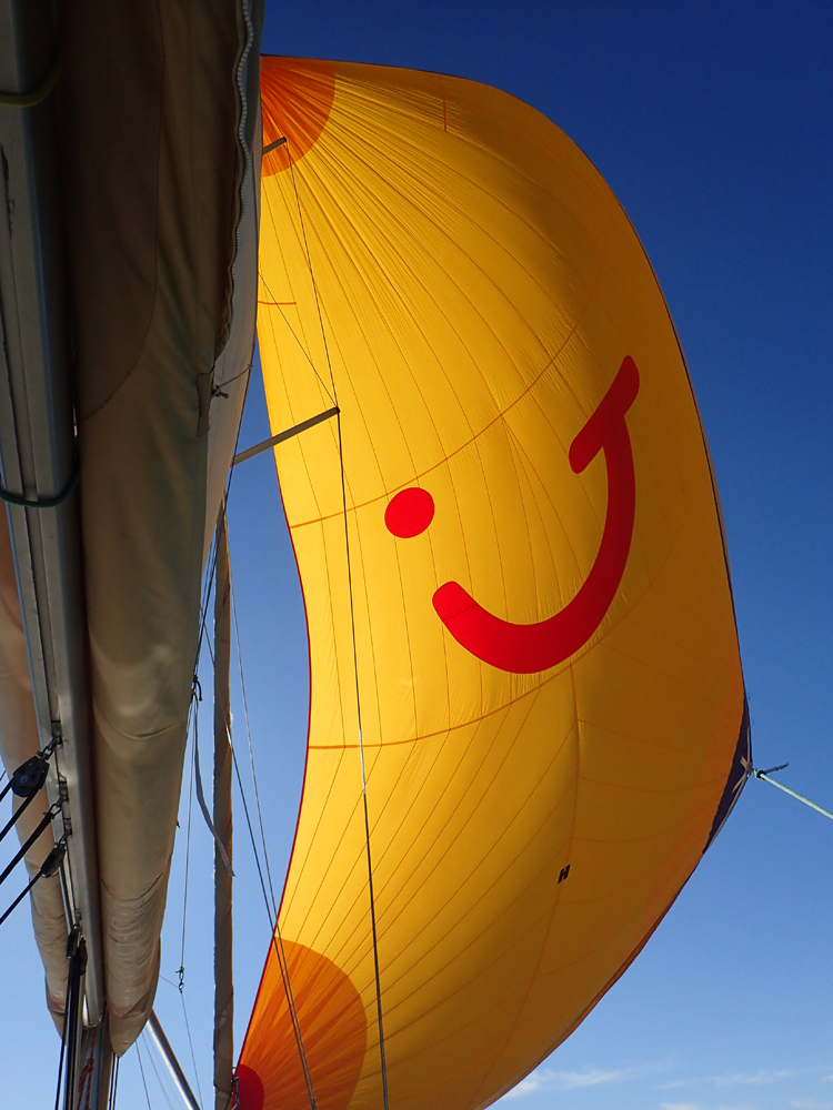 Ветер был слабый, но попутный. Шли почти все время под спинакером со скоростью 4–5 узлов.