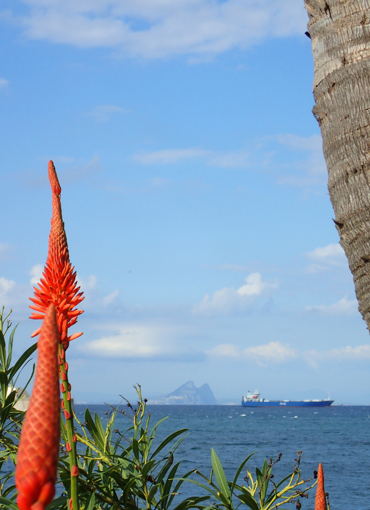 Пейзаж с гибралтарской скалой вдалеке.