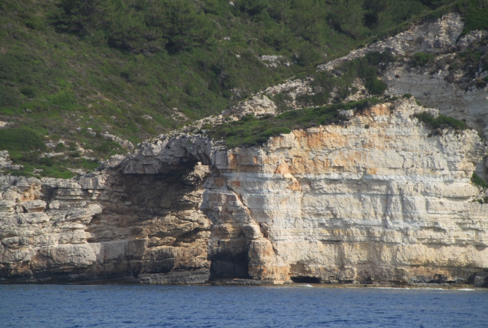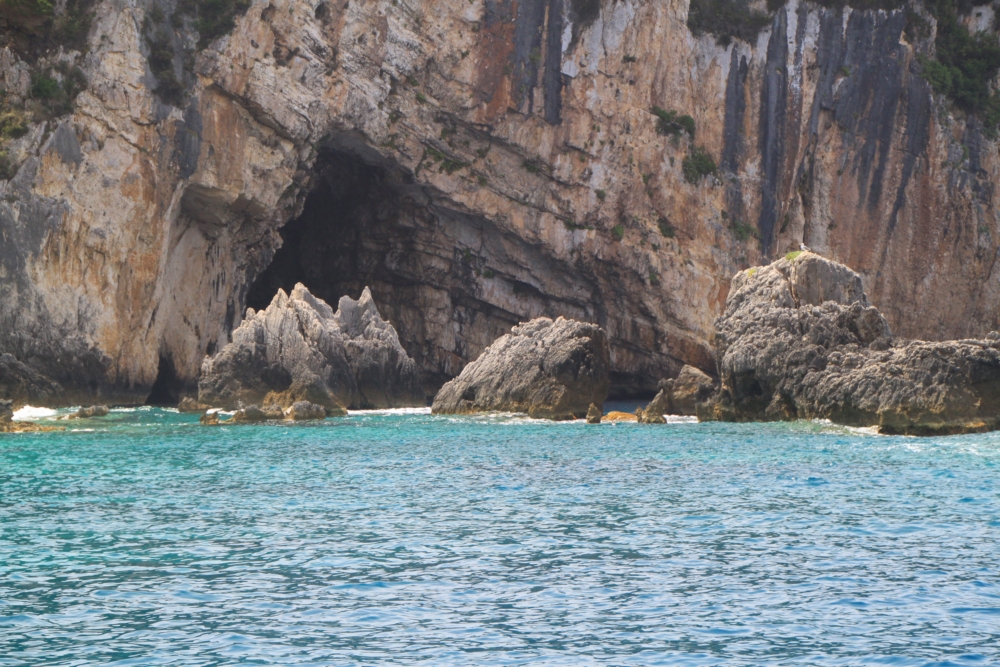 На Антипаксосе мы немного побыли туристами, а именно ходили на моторе смотреть Голубую пещеру. Это был самый зрелищный день нашего похода.