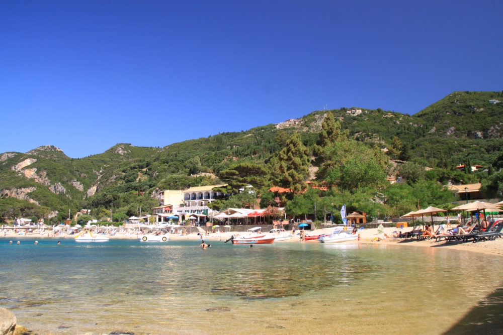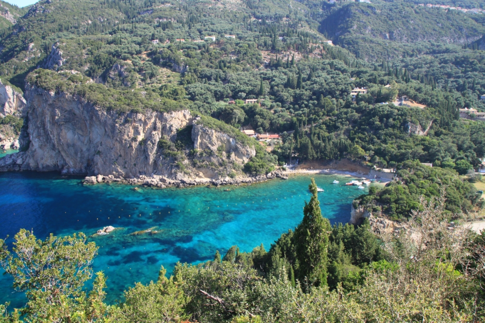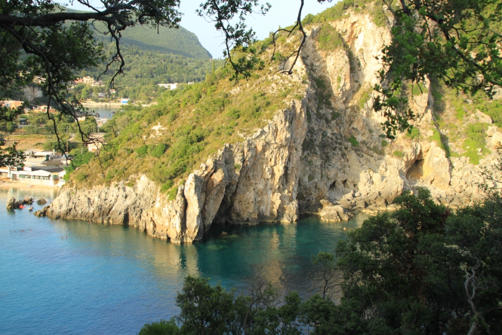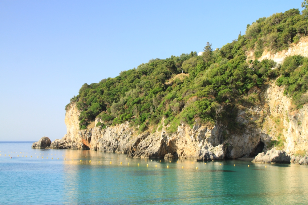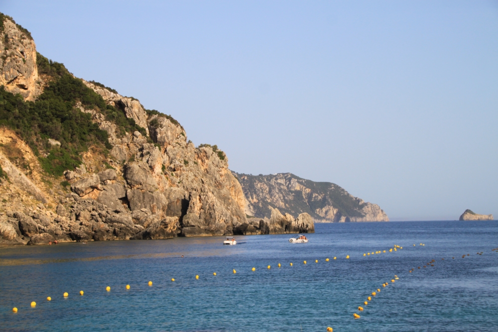 Вода в море в Палеокастрице довольно холодная, это обусловлено морскими течениями. Тут есть несколько очень красивых бухт с пляжами. Для купания мы выбрали тот, где на берегу есть пресные души и раздевалки.