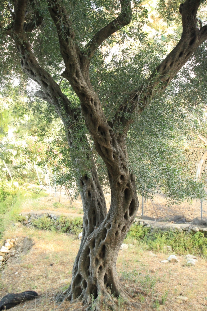 Это олива. Из дерева оливы местные жители делают всякие доски и миски.