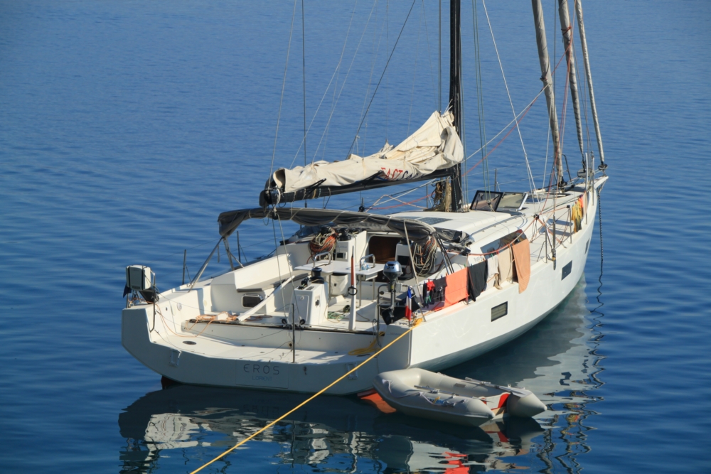 Вид на нашу яхту с берега.